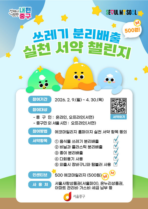 김길성 중구청장은 “생활폐기물 감량을 위해서는 주민들의 자발적인 참여가 무엇보다 중요하다”며 “앞으로도 주민들과 함께 생활 속 분리배출 실천을 확산해 지속가능한 자원순환 도시를 만들어가겠다”고 말했다.