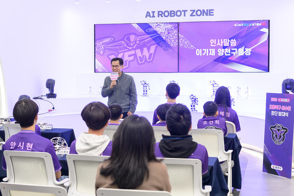 서울 양천구(구청장 이기재)가 14일 넓은들미래교육센터에서 드론 기술과 스포츠를 결합한 청소년 드론축구 선수단 ‘Y-퓨처윙스(Y-FUTURE WINGS)’ 창단 발대식을 개최했다.