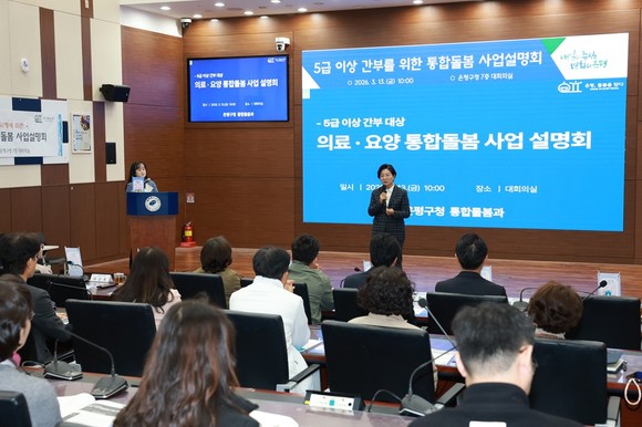 서울 은평구(구청장 김미경)는 지난 13일 은평구청 전 부서와 동주민센터 5급 이상 간부를 대상으로 ‘통합돌봄 사업설명회’를 개최했다고 밝혔다.