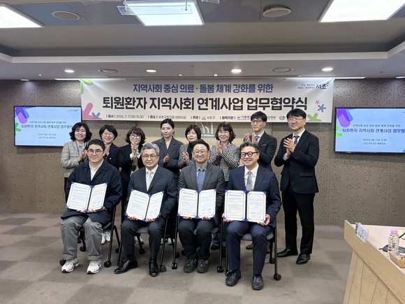 서울 서초구(구청장 전성수)는 17일 서초구청 5층 대회의실에서 지역 의료기관과 함께 ‘퇴원환자 지역사회 연계사업 업무협약’을 체결하고 퇴원 후 돌봄이 필요한 환자의 안정적인 지역사회 복귀 지원에 나선다고 밝혔다.