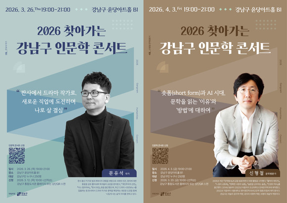 서울 강남구(구청장 조성명)가 2026년 ‘찾아가는 인문학 콘서트’를 본격 시작한다. 강남구 대표 문화행사로 자리 잡은 인문학 콘서트는 올해도 주민들이 생활권 가까이에서 인문학과 문화예술을 함께 누릴 수 있도록 연중 운영할 예정이며, 봄시즌 첫 무대로 문유석 작가와 신형철 작가를 초청해 3월과 4월 두 차례 강연을 연다.