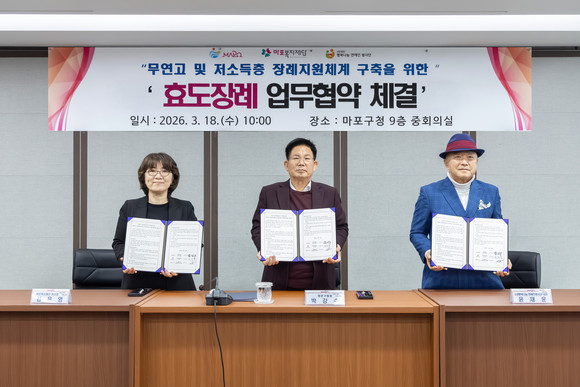 협약으로 마포구는 효도장례 대상자의 사전 의향서를 접수해 본인의 뜻을 남길 수 있도록 하고, 대상 여부 확인 등 행정업무를 수행해 장례가 원활히 진행될 수 있도록 지원한다.