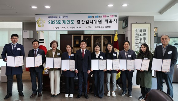 서울 용산구의회(의장 김성철)는 3월 24일 의장실에서 2025회계연도 결산검사위원 위촉장 수여식을 개최하고 본격적인 결산검사 일정에 돌입했다.