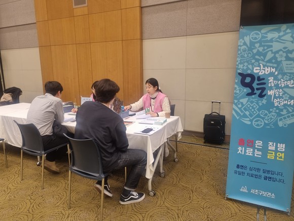 서울 서초구(구청장 전성수)가 25일 LG전자·LG에너지솔루션 사업장에서 대규모 사업장 근로자를 대상으로 한 ‘이동금연클리닉’을 운영했다고 밝혔다. 이번 운영은 대규모 사업장 직장인의 금연 실천과 건강한 생활습관 형성을 돕기 위해 마련됐다.