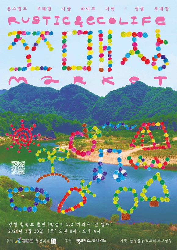 ‘영월 쪼매장’은 3월 28일 오전 11시부터 오후 4시까지 영월군 청령포 들판(방절리 522 일원)에서 열린다. 전국 31개 청년 창업 기업이 참여해 지역 자원을 활용한 식품과 예술·공예품 등을 선보인다. 행사 장소인 청령포는 영화 ‘왕과 사는 남자’의 배경지로, 방문객들은 자연 경관과 함께 다양한 콘텐츠를 즐길 수 있다.