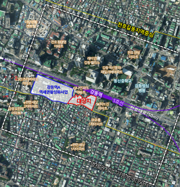 서울 강동구(구청장 이수희)는 성내동 179번지 일대 ‘강동역B 역세권 활성화사업’ 추진을 위한 지구단위계획이 9일 결정 고시됨에 따라 본격적인 사업 추진 단계에 들어섰다고 밝혔다.
