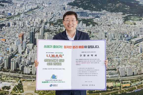쓰레기 줄이기 캠페인 서약에 참여한 김경호 광진구청장. 사진=광진구청