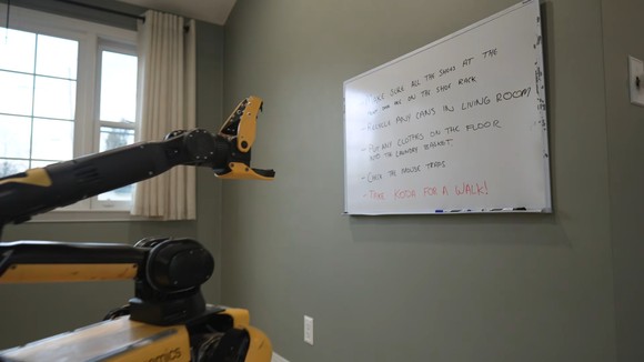 공개된 영상에서 스팟은 카메라와 AI를 활용해 칠판에 적힌 할 일 목록을 인식한 뒤 신발 정리, 쓰레기 수거, 세탁물 분류 등 작업을 순차적으로 수행했다. 추가로 입력된 강아지 산책 지시도 스스로 이해하고 실행하는 등 상황 인식과 판단 능력을 보여줬다.