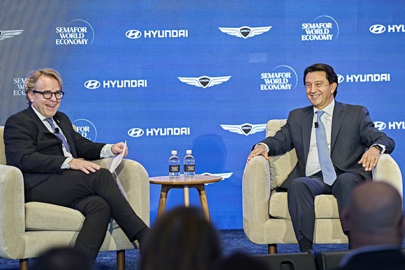 호세 무뇨스 현대자동차 사장이 글로벌 경제 컨퍼런스인 세마포 월드 이코노미에 참석해 전동화와 수소, 자율주행을 아우르는 미래 모빌리티 전략을 제시했다.